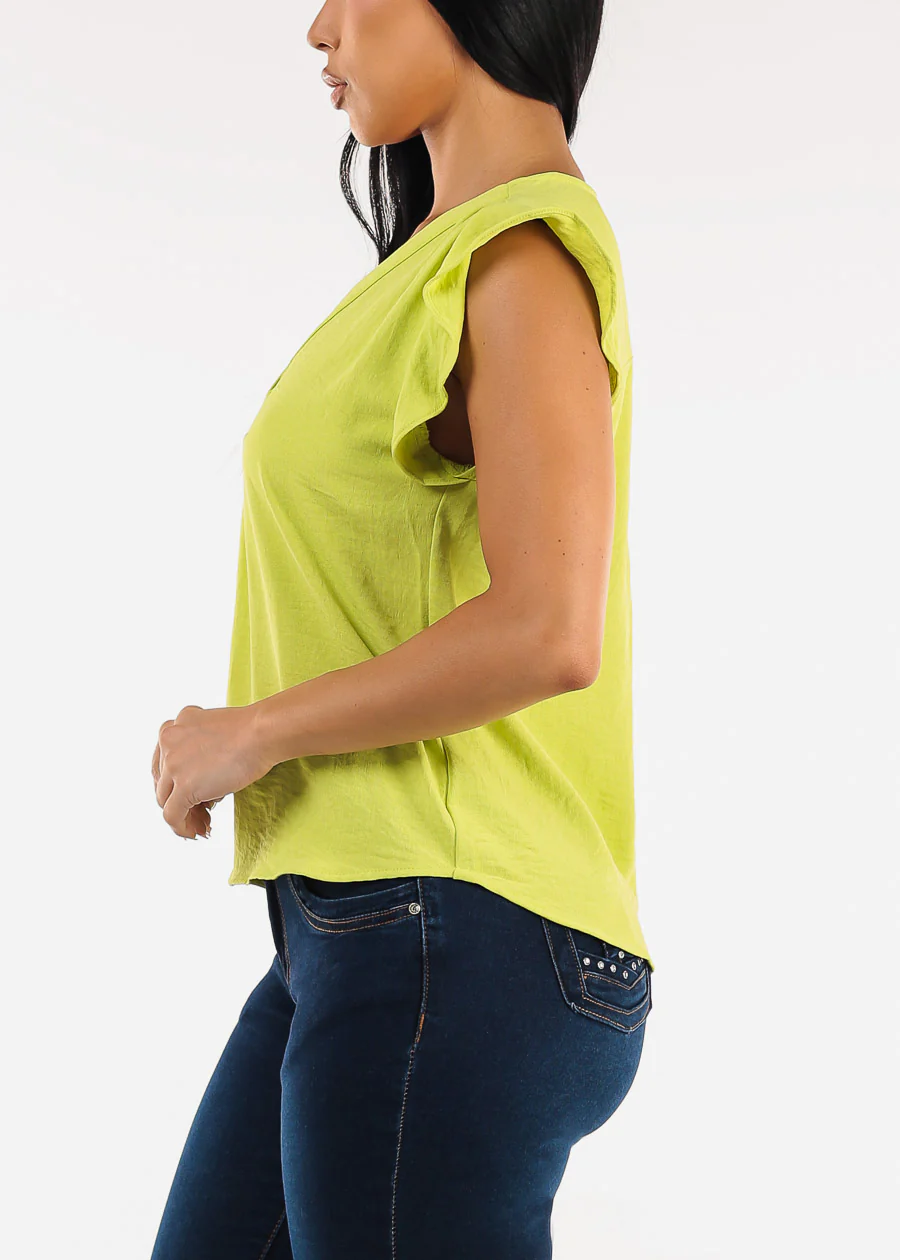 - Short Sleeve. Slip on style. No pockets. V Neck.